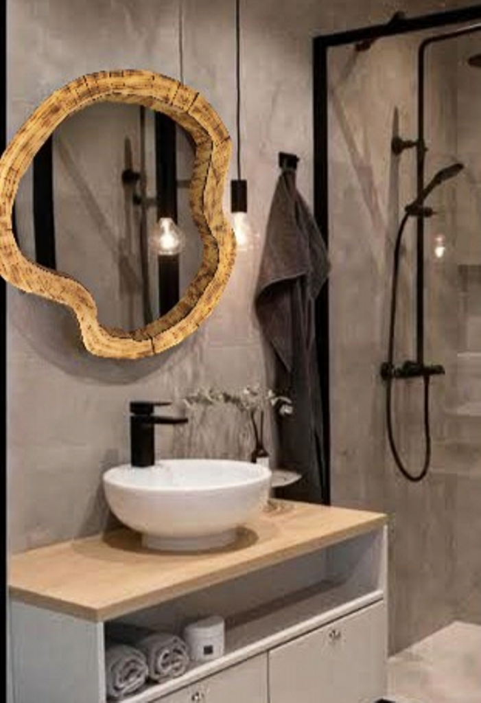 Drewniane lustro do łazienki to niezwykłe połączenie elegancji i naturalnego piękna. Jego wyjątkowy design doskonale komponuje się z nowoczesnymi łazienkami, nadając im niepowtarzalny charakter. Lustro wykonane jest z drewna naturalnego „plastra pnia”, poddane szczotkowaniu, opalaniu i profesjonalnej obróbce lakierniczej, dzięki czemu lustro emanuje autentycznym, organicznym urokiem.
